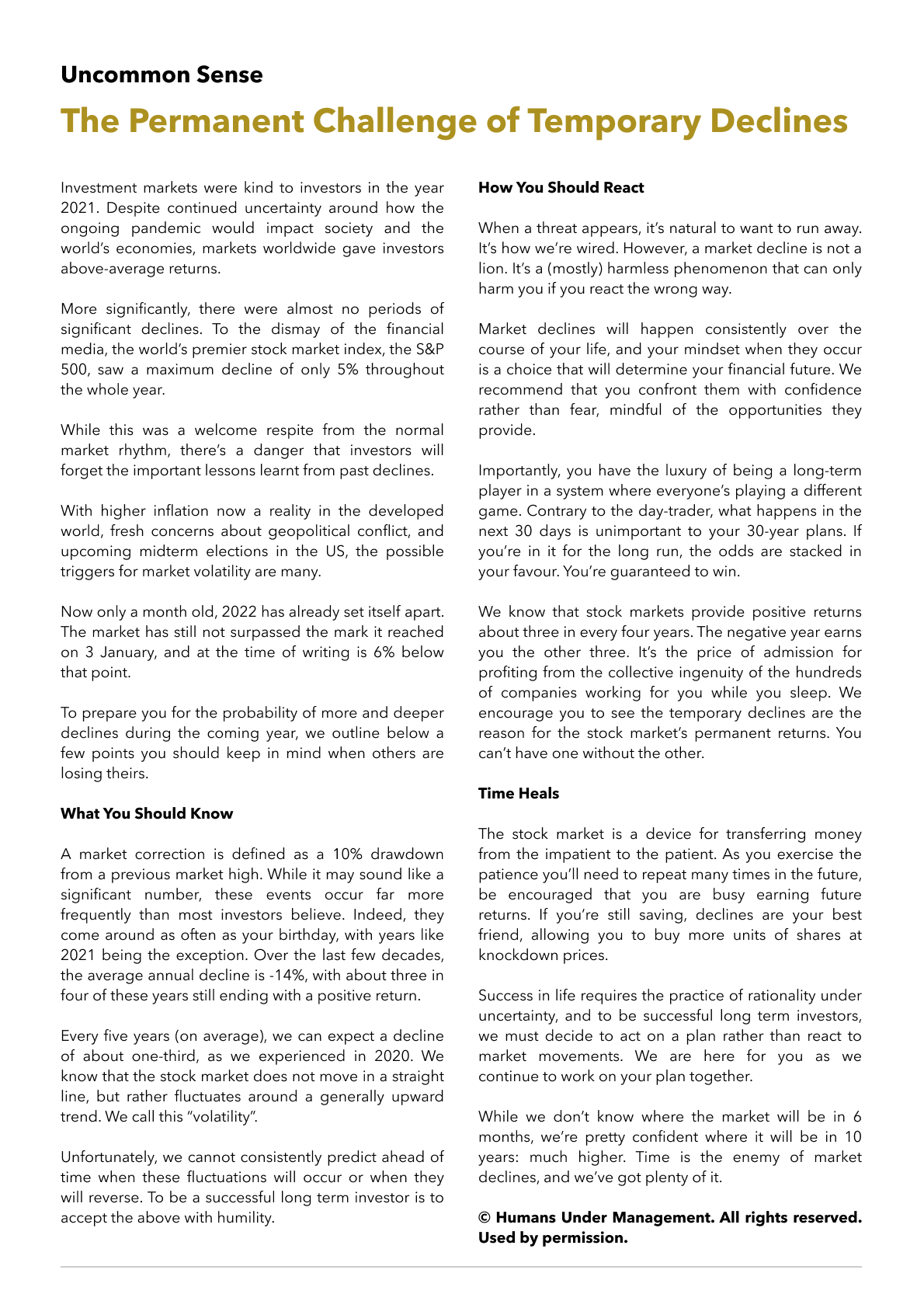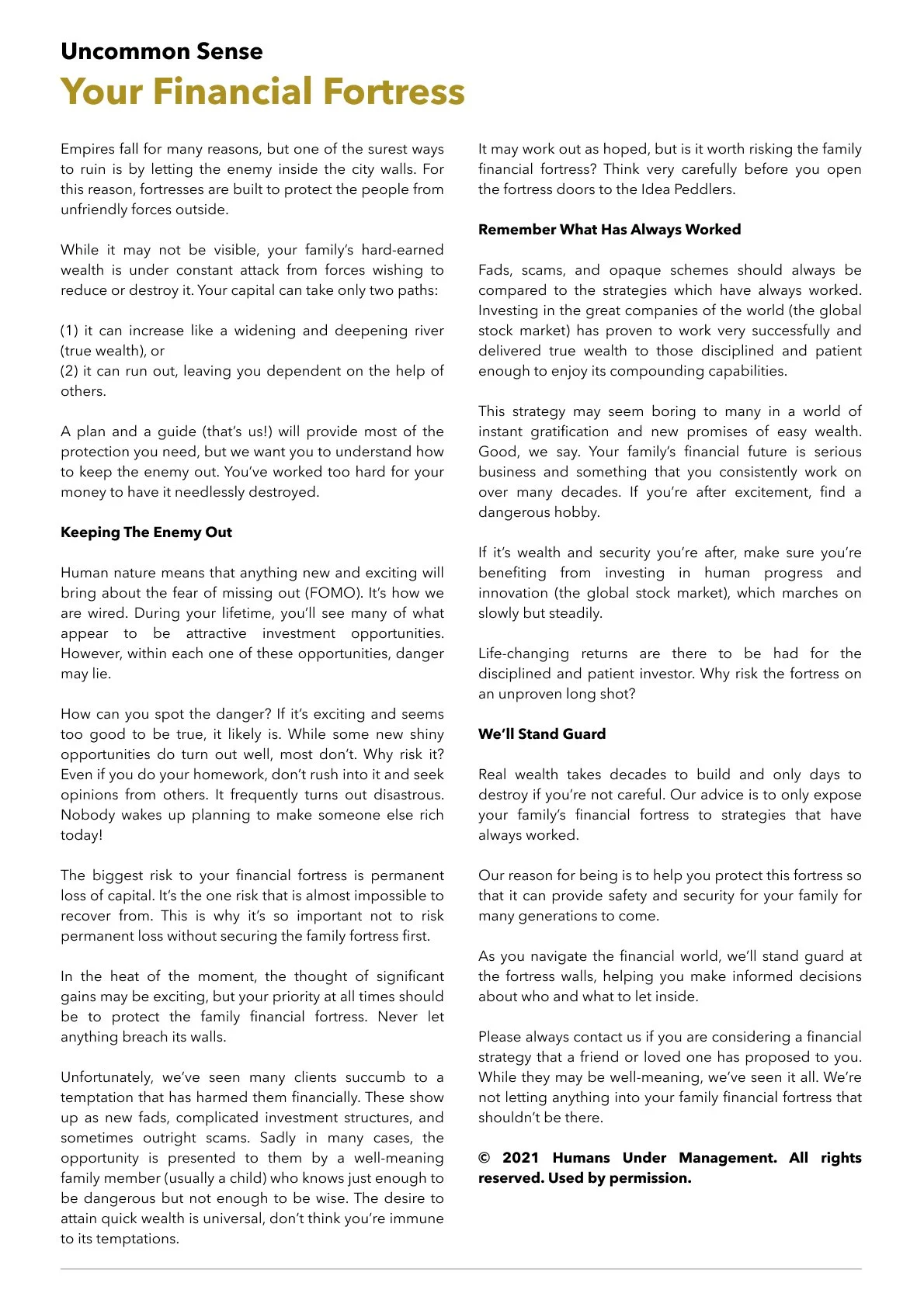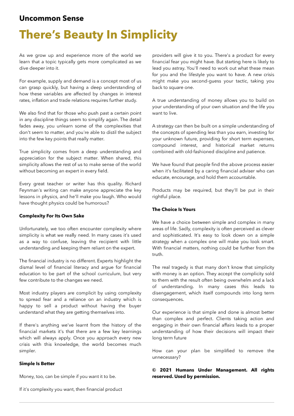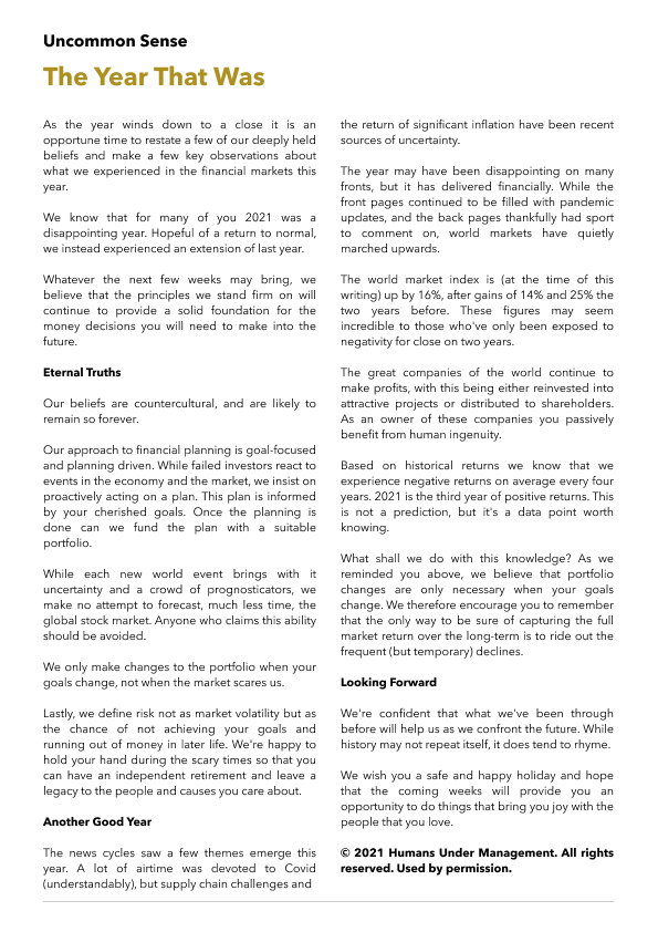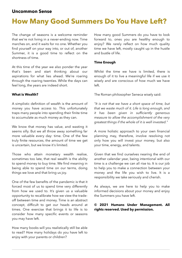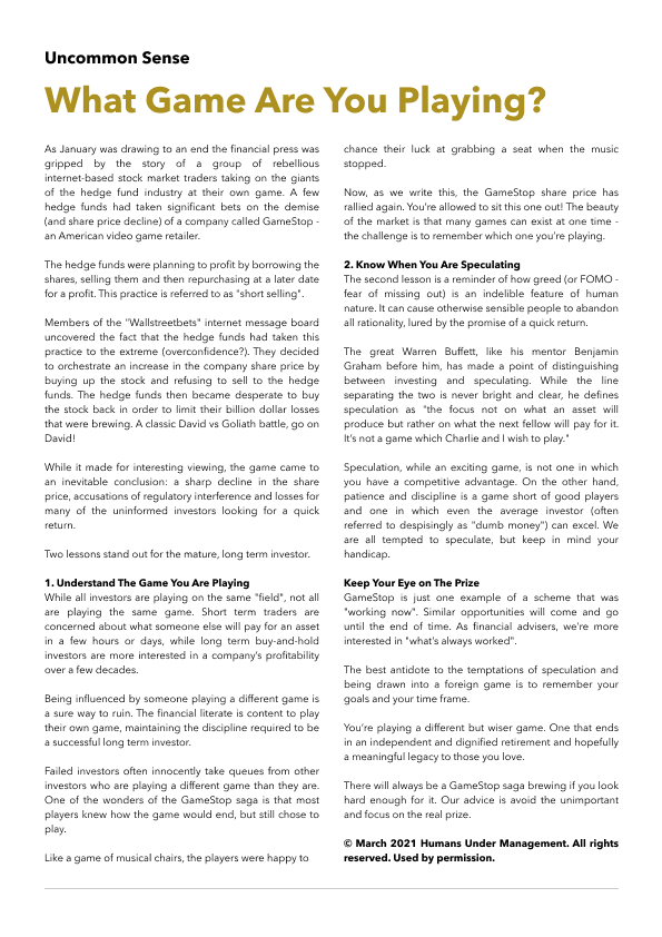 Shorter Essays From Previous Uncommon Sense Newsletters