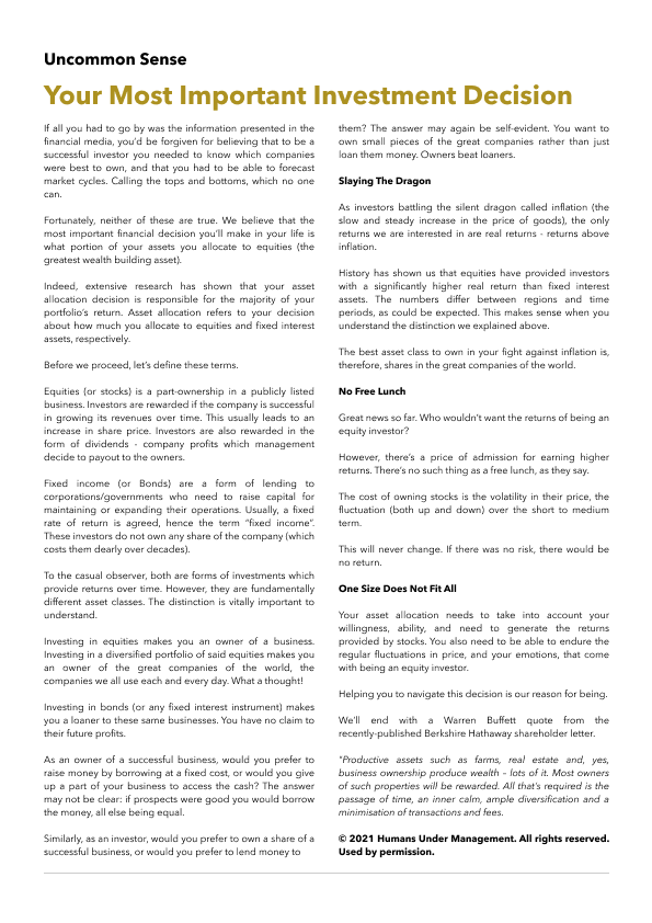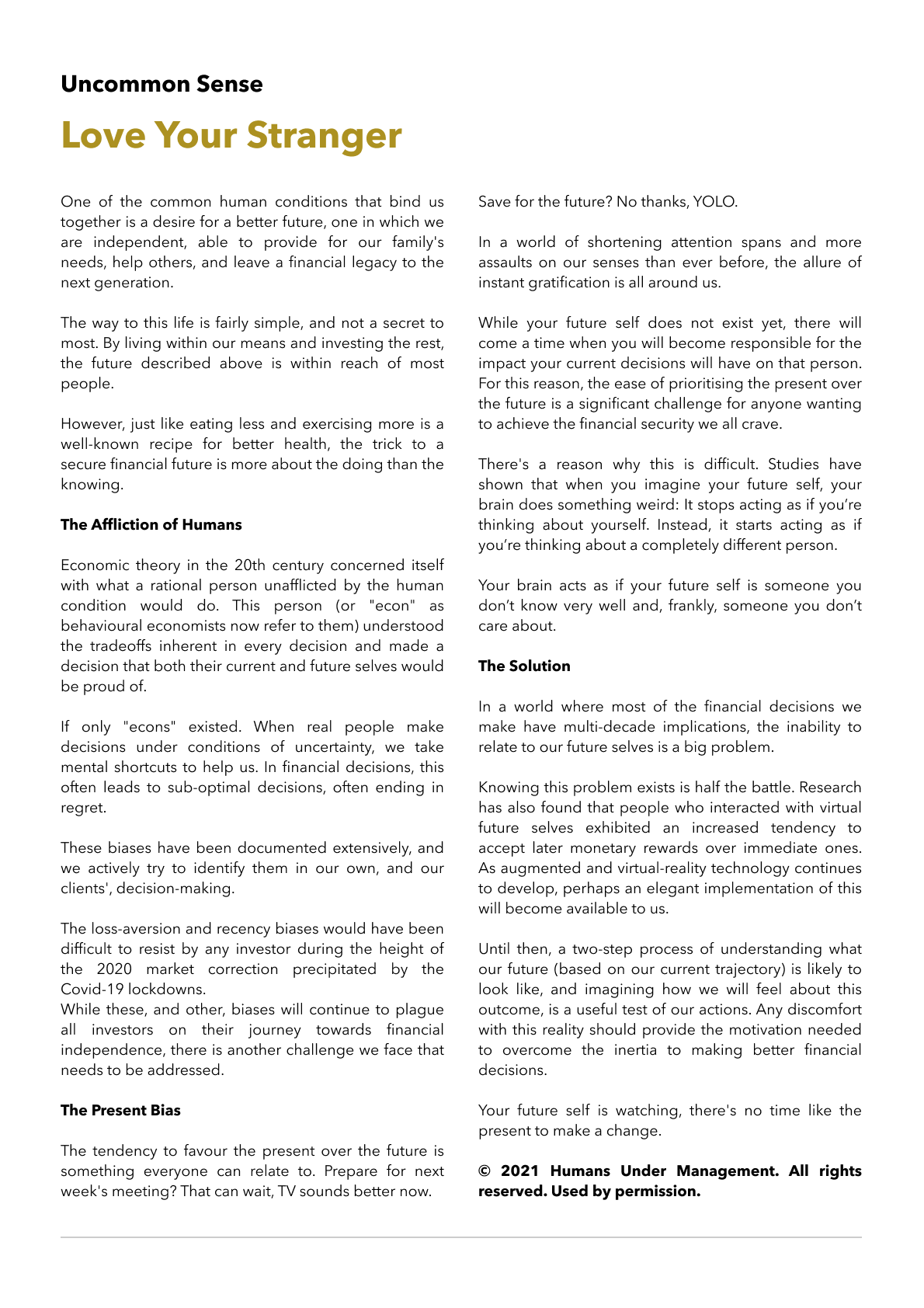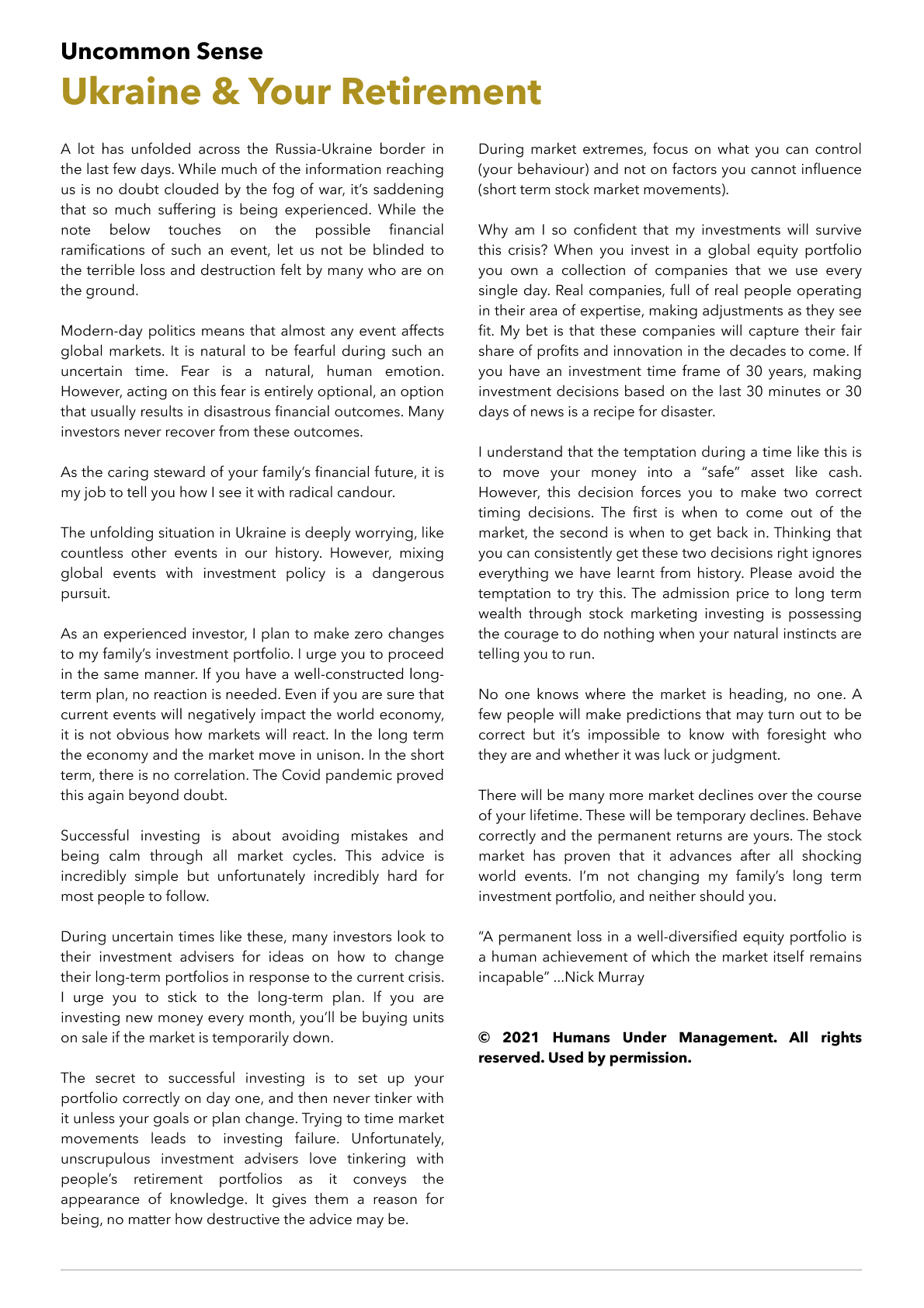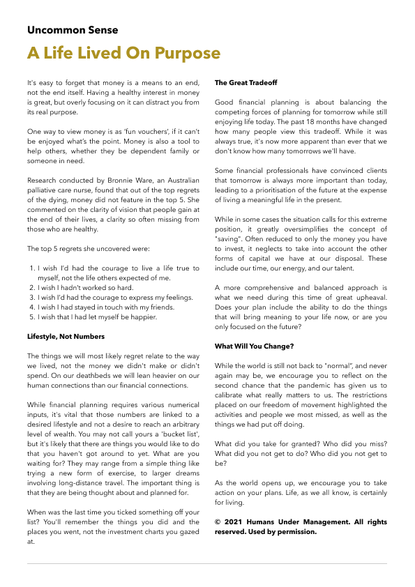 Shorter Essays From Previous Uncommon Sense Newsletters