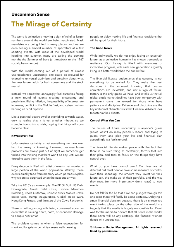 An original client-friendly essay aimed at clients and prospects, written by advisers.