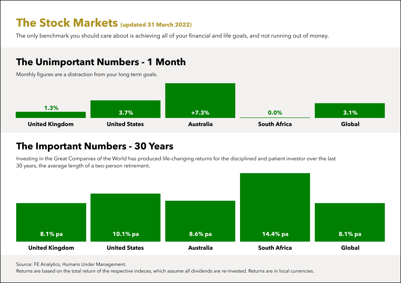 In essence, investing is not an intellectual pursuit. Itβs a temperamental pursuit, and success comes down to your behaviour during a few key market inflection points, primarily driven by cycles of fear and greed. Feeling fearful is absolutely normal; itβs human. Stopping you from acting on this fear is my reason for being, my lifeβs calling. You pay me to tell you that I don't know when these declines will turn, but I do know they will. Patience is a superpower, and discipline is required in order to be patient.