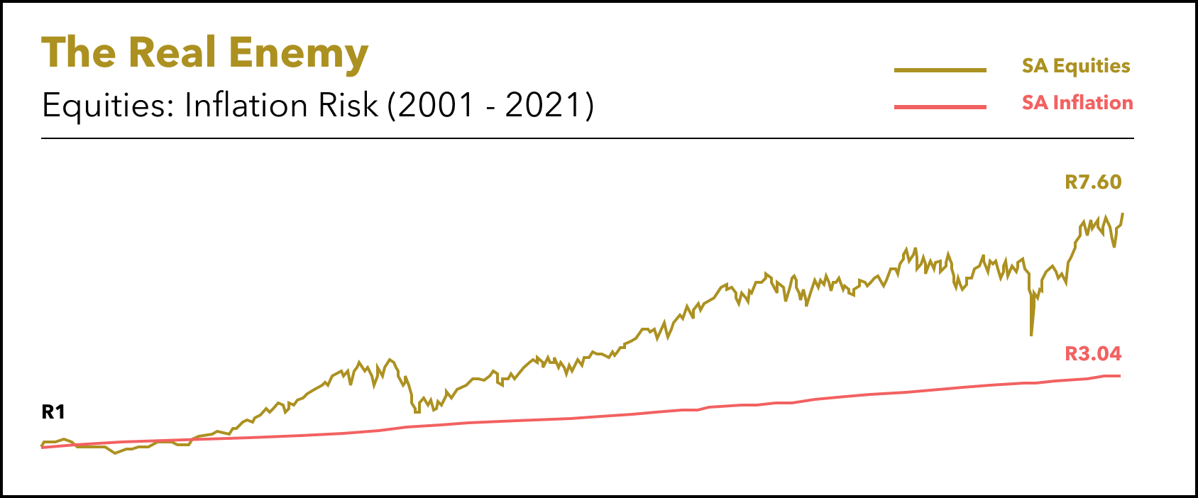 Over the last 20 years, inflation in South Africa has resulted in an item costing R1 in 2001 now costing R3.04 in 2021. Your purchasing power has been decimated!